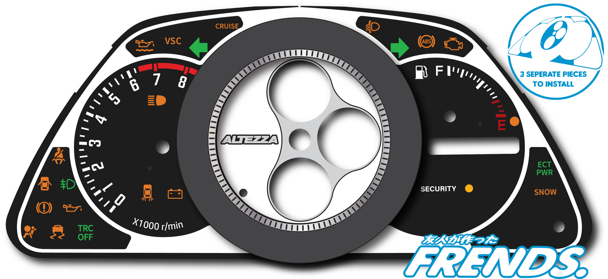 ALTEZZA/IS200/IS300 gauge cluster decal kits let you really make your car yours with colourful livery decals for the interior. These decal kits are designed to fit over the top of your existing standard gauge cluster. The decals are printed on quality vinyl and then laminated with a matte finish to give a real OEM look once installed. Decal comes as 3 separate pieces to install.